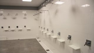 หลังจากชมตัวสนามฟุตบอลไปแล้ว เราเดินไปดูห้องต่างๆ ภายในกันค่ะ ต้องบอกก่อนว่าสนามกีฬาแห่งนี้มีทั้งหมด 4 ชั้นด้วยกัน โดยชั้นที่ 1 จะเป็นสำนักงานห้องแถลงข่าว ห้องสื่อมวลชน ร้านขายสินค้าที่ระลึก ห้องนักกีฬาทีมเหย้า-เยือน ห้องพักผู้ตัดสิน และห้องประชุม